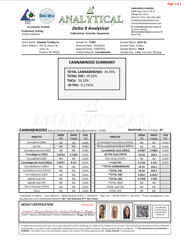 Gotti 33 THCa hemp is a distinguished hybrid strain renowned for its rich flavor profile and balanced effects. This strain is highly favored by hemp enthusiasts for its unique sensory attributes and versatile benefits, making it an excellent choice for a variety of occasions.